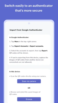 امنح حساباتك الرقمية الدرع الأقوى مع OneAuth، رفيقك الأمثل لتعزيز الأمان عبر الإنترنت. يضع OneAuth قوة المصادقة الثنائية في متناول يديك، ليمنحك راحة البال التي تستحقها في عالم رقمي متزايد التعقيد. يمكنك إضافة حساباتك بكل سهولة، سواء بمسح رمز QR سريع أو بإدخال التفاصيل يدويًا، لتوليد رموز مرور لمرة واحدة (OTPs) تعتمد على الوقت. الأهم من ذلك، أن هذه الرموز تعمل بسلاسة حتى عندما تكون غير متصل بالإنترنت، مما يضمن لك وصولاً دائمًا وآمنًا إلى حساباتك.