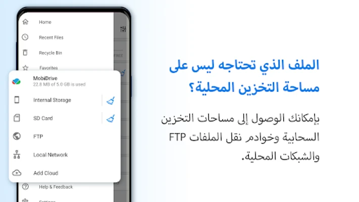 File Commander يقدم إدارة ملفات شاملة ومحسّنة لآندرويد 13. احصل على 5 جيجابايت تخزين سحابي مجاني مع MobiDrive، بالإضافة إلى خصائص الأمان المتقدمة مثل الإخفاء والتشفير، ومحول ملفات مدمج. تحكم بذاكرة أجهزتك بسهولة، بما في ذلك إصدار خاص لأجهزة التلفاز بواجهة مستخدم بسيطة.