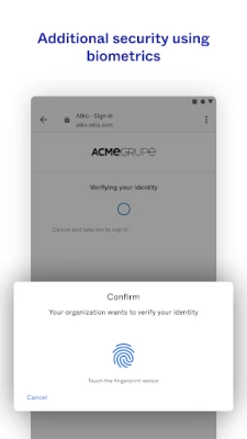 يتميز Okta Verify بالمرونة في طرق التحقق، ليناسب احتياجاتك وتفضيلات مؤسستك. يمكنك بسهولة تأكيد هويتك عبر إشعارات الدفع الفورية التي تصل إلى جهازك، مما يجعل عملية الدخول سريعة وخالية من المتاعب. أو قد تفضل استخدام رمز التحقق المؤقت المكون من ستة أرقام، الذي يتجدد بانتظام لطبقة إضافية من الأمان. ولمزيد من الراحة والكفاءة، يدعم Okta Verify المصادقة البيومترية، مثل بصمة الإصبع أو التعرف على الوجه، لإنهاء تسجيل الدخول بلمسة واحدة أو نظرة واحدة، إذا كانت مؤسستك قد مكّنت هذه الميزة.